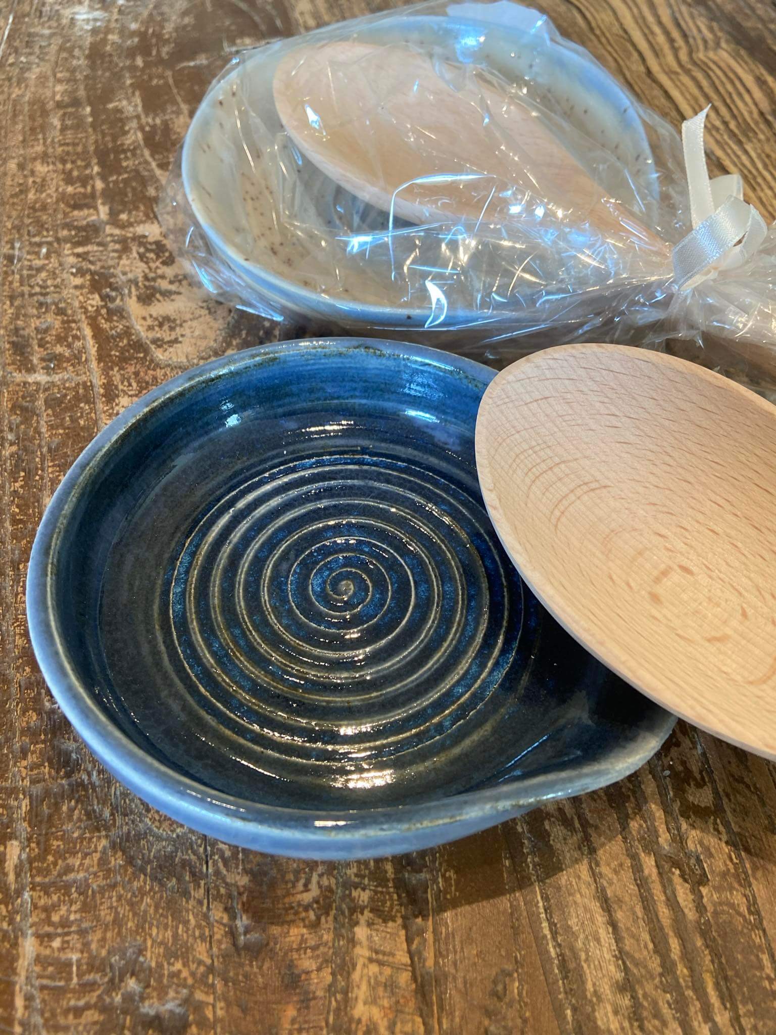Spoonrest i dyb mørk blå glasur inkl træske.